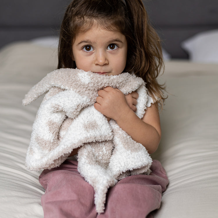 Look no further for the perfect lovey for your sweet little one. Trendy, plush, and oh so snuggly, our Blushing Beige & White daisy print lovey is sure to be a favourite. Knit from our signature micro-polyester feather yarn, this is the softest lovey you will ever feel! All of our blankets are double layered which provides thickness and stretch to enhance every snuggle.