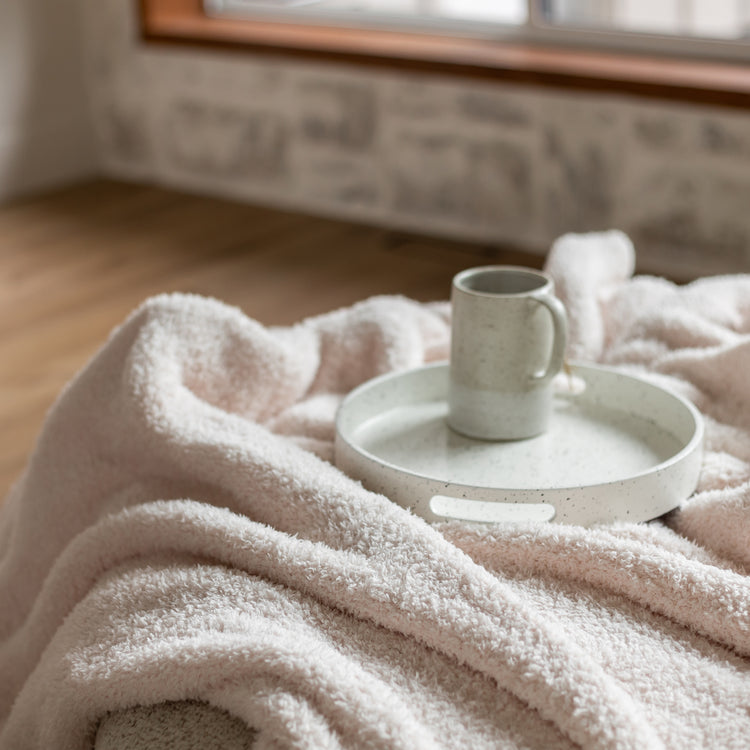 Our signature heavy weight knit throw blanket is the softest blanket ever and feels like butter! Double-layered construction gives it some weight to keep you feeling extra cozy. Knit using a jacquard technique, our blankets are fluffy yet dense with the perfect amount of stretch. This is the blanket that dreams are made of, so cozy, so chic you will want to wear it around the house during the day and sleep with it at night. Great from the couch, to the bed, to the stroller, this will become your emotional support blanket.
