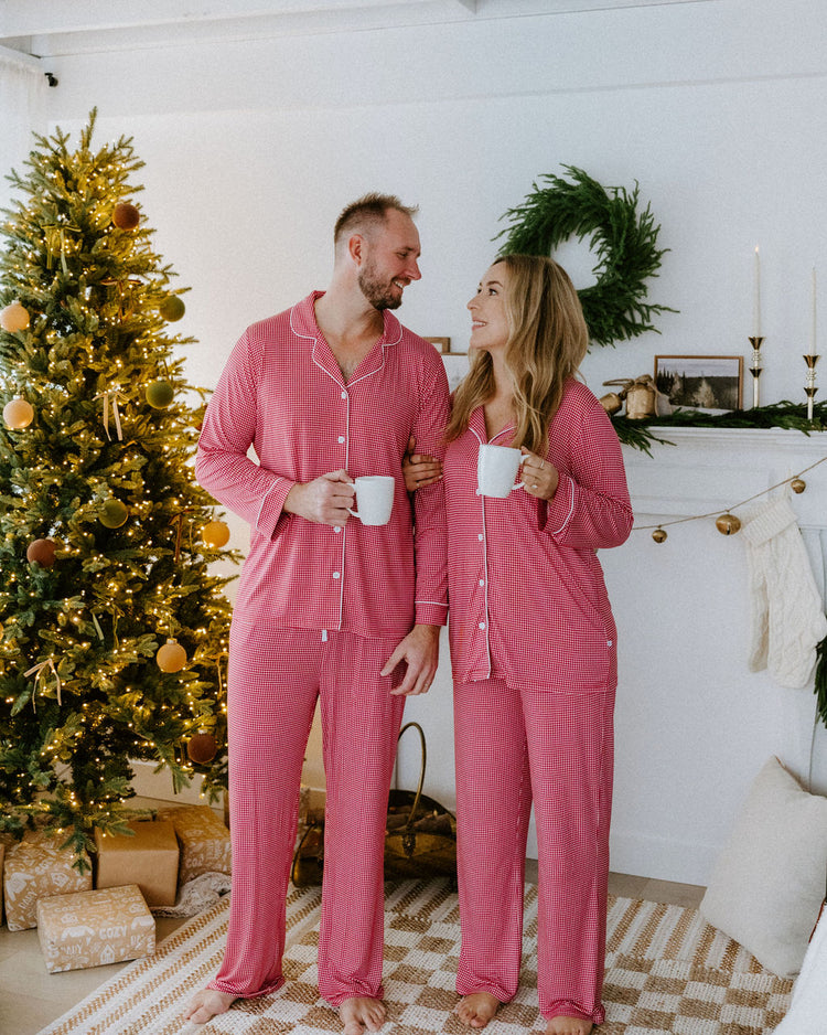 Wrap your family in the perfect blend of classic style and cozy comfort with our limited-edition family matching Christmas Pajama sets. Thoughtfully crafted from luxuriously soft viscose from bamboo, it's the only fabric the Sunset Snuggle family trusts for a truly restful night's sleep. If you've ever found other pajamas too tight or uncomfortable, these are the perfect solution – flexible, silky-smooth, and tailored to perfection. With a fit that flatters and fabric that breathes, you'll feel just right – whether you're lounging by the fire or drifting off to sleep. The timeless gingham check print adds festive flair to the holidays, while its versatile design makes it a year-round favourite for our style-savvy trendsetters.