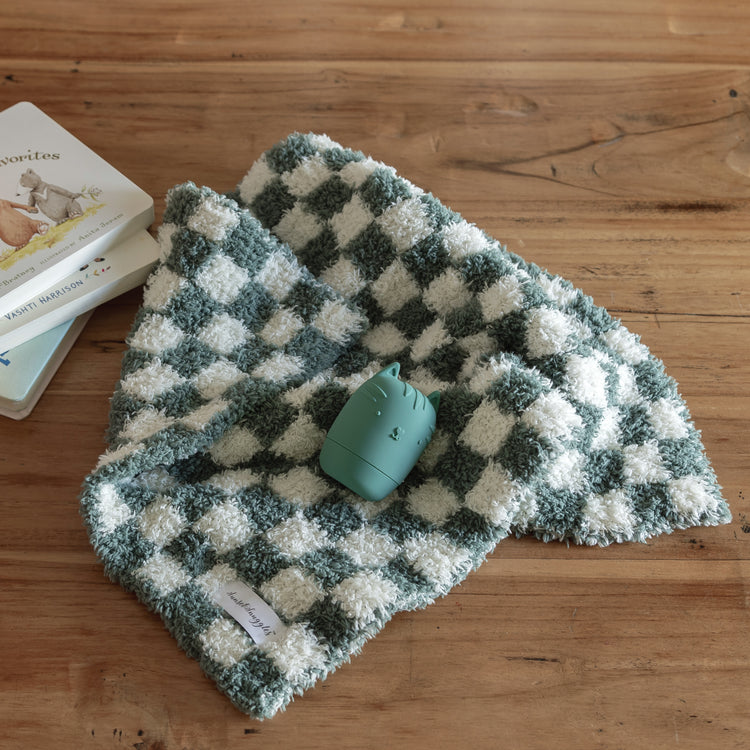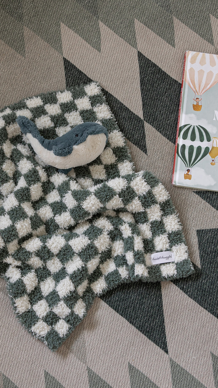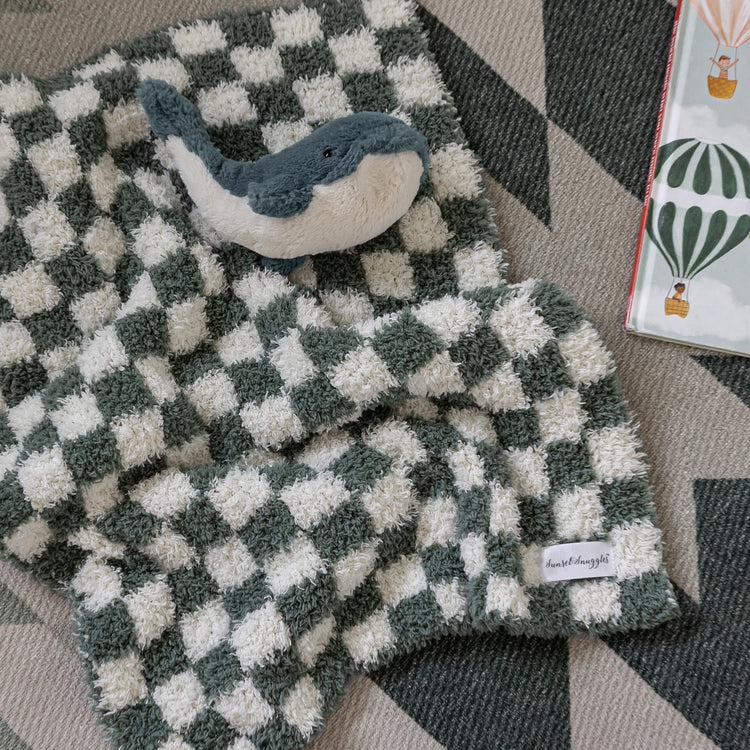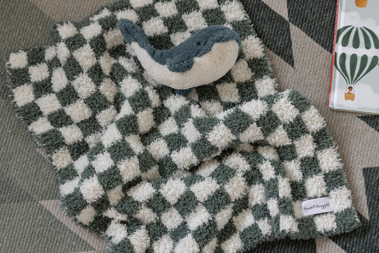 Look no further for the perfect lovey for your sweet little one. Trendy, plush, and oh so snuggly, our Baby's Breath & Forest Green Check Print lovey is sure to be a favourite. Knit from our signature micro-polyester feather yarn, this is the softest lovey you will ever feel! All of our blankets are double layered which provides thickness and stretch to enhance every snuggle.