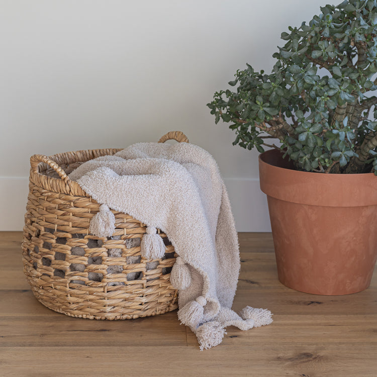 Wrap yourself in luxury with the world's softest throw blanket from Sunset Snuggles. Knit from our signature micro-polyester feather yarn, the Blushing Beige Solid Double Layer with Tassels Print Extended Throw blanket is the perfect mix of form and function. These luxuriously plush blankets are double layered, providing thickness and stretch to enhance every snuggle.