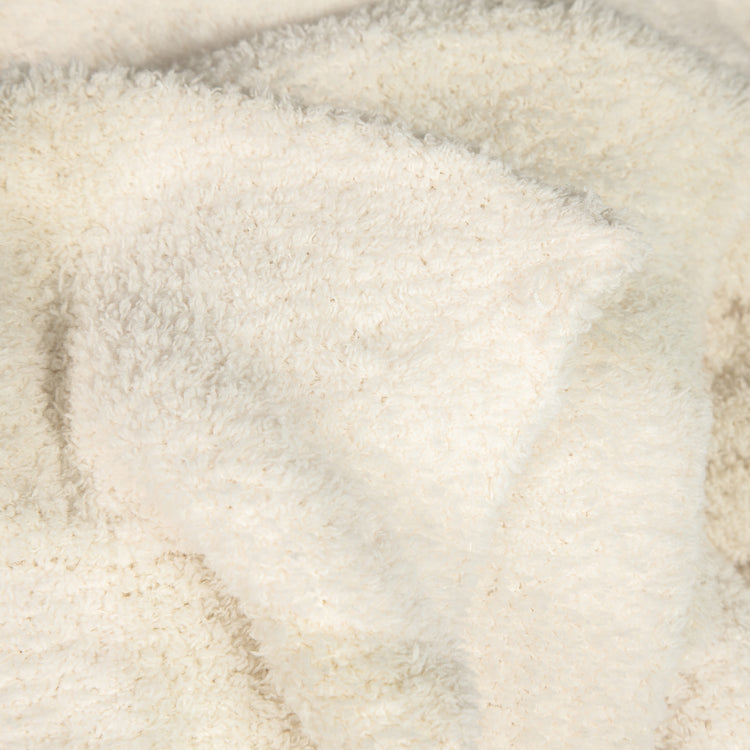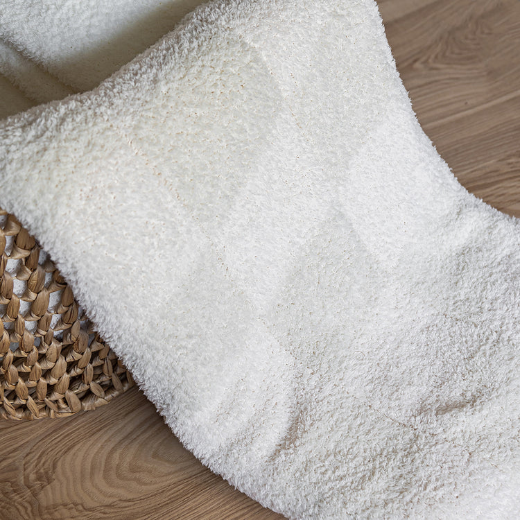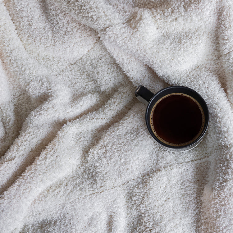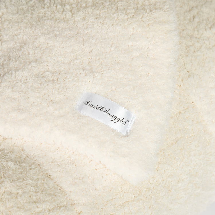 Wrap yourself in luxury with the world's softest throw blanket from Sunset Snuggles. Knit from our signature micro-polyester feather yarn, the Blushing Beige & White Bold Checker print blanket is the perfect mix of form and function. These luxuriously plush blankets are double layered, providing thickness and stretch to enhance every snuggle.