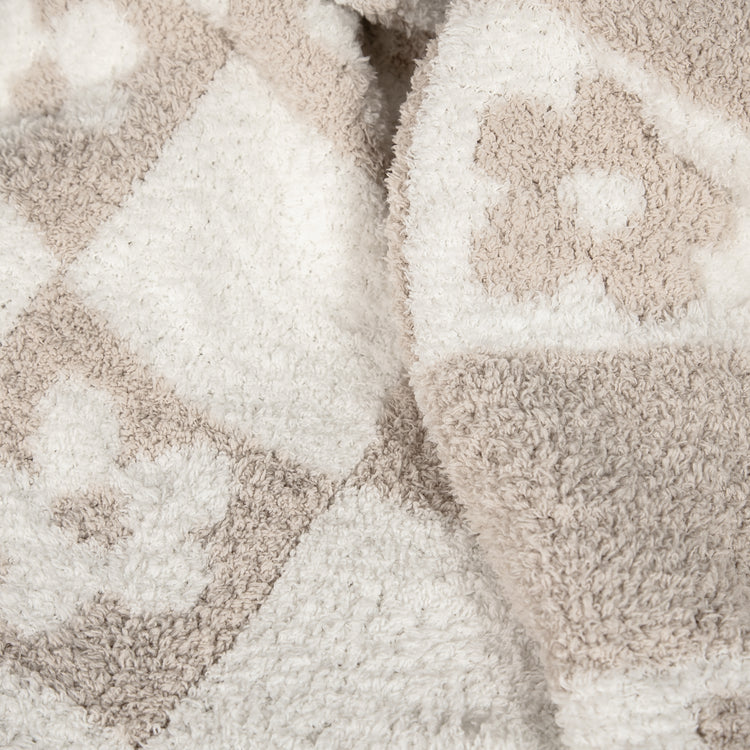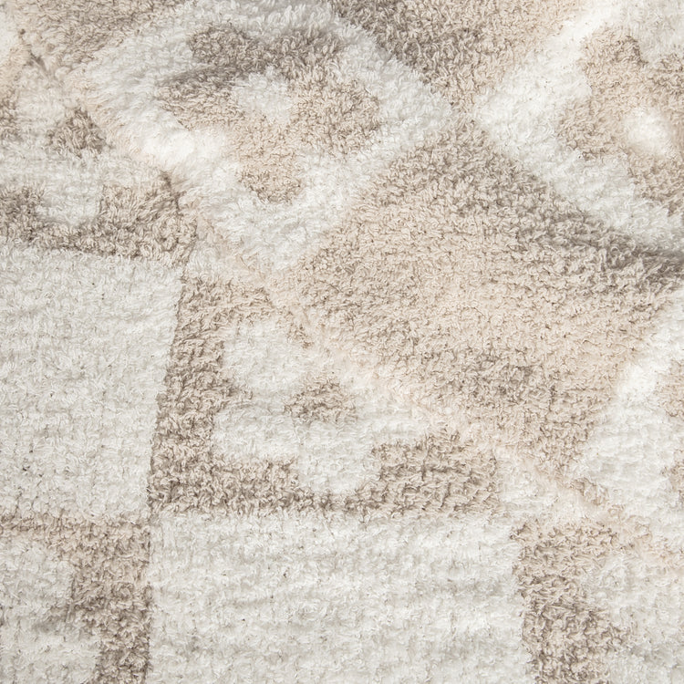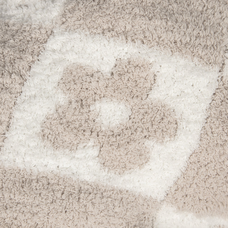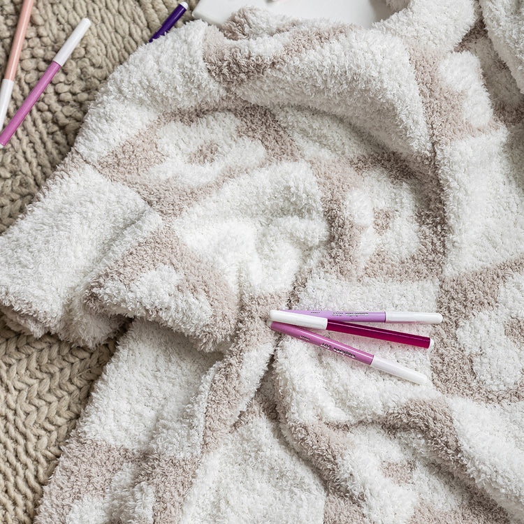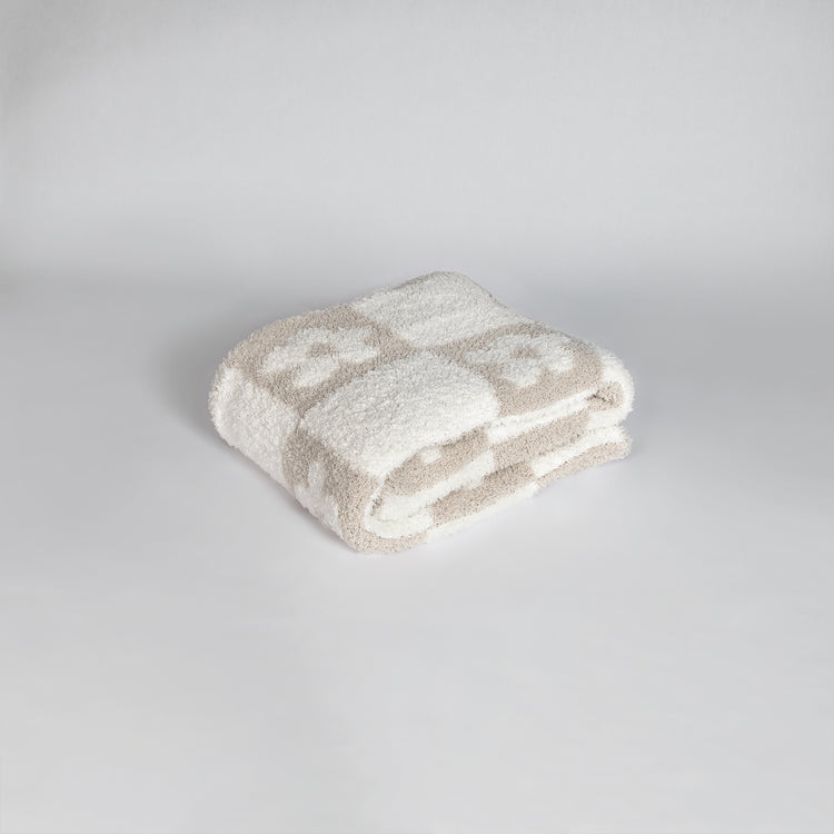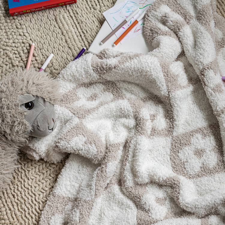 Your little one will fall in love with this luxuriously soft and snuggly baby blanket. Knit from our signature micro-polyester feather yarn, the blushing beige and white flower power print toddler blanket is destined to become their must-have for nap time, stroller softness, and everyday cuddles. All of our blankets are double layered which provides thickness and stretch to enhance every snuggle.