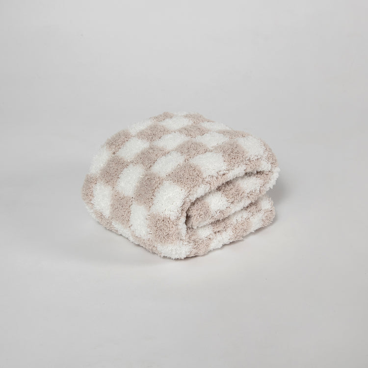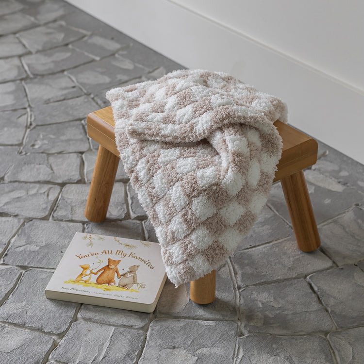 Look no further for the perfect lovey for your sweet little one. Trendy, plush, and oh so snuggly, our Blushing Beige & White check print lovey is sure to be a favourite. Knit from our signature micro-polyester feather yarn, this is the softest lovey you will ever feel! All of our blankets are double layered which provides thickness and stretch to enhance every snuggle.