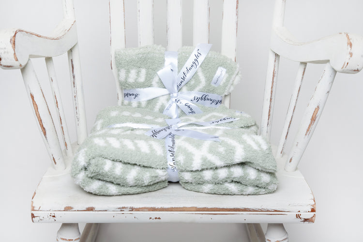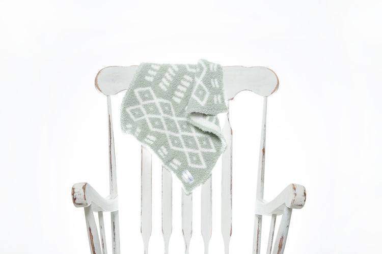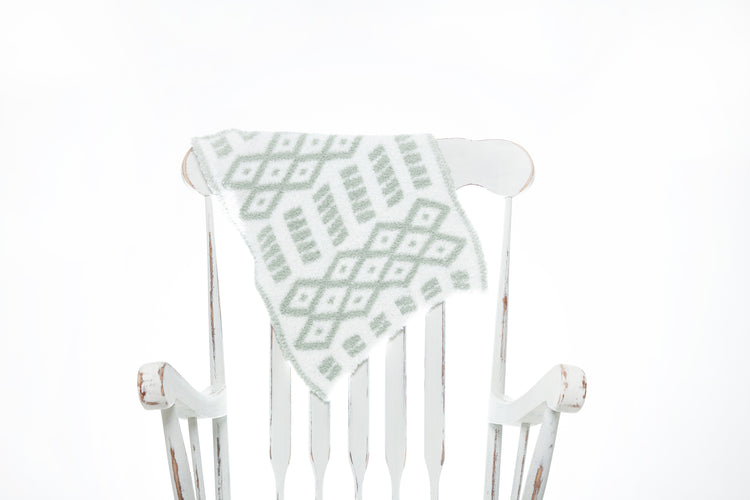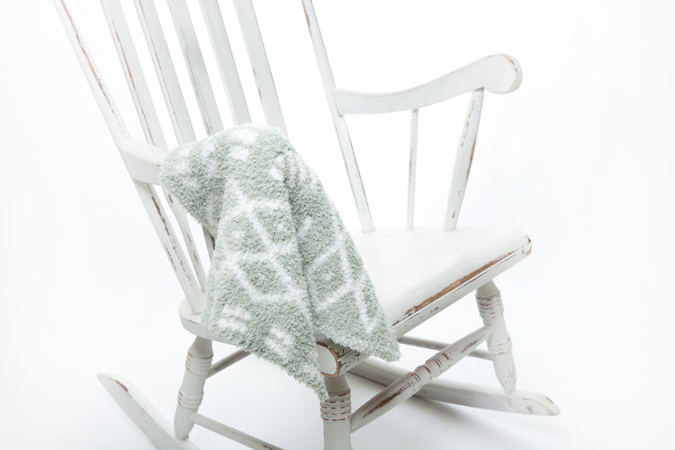 Look no further for the perfect lovey for your sweet little one. Trendy, plush, and oh so snuggly, our Desert Sage & White diamond point lovey is sure to be a favourite. Knit from our signature micro-polyester feather yarn, this is the softest lovey you will ever feel! All of our blankets are double layered which provides thickness and stretch to enhance every snuggle.