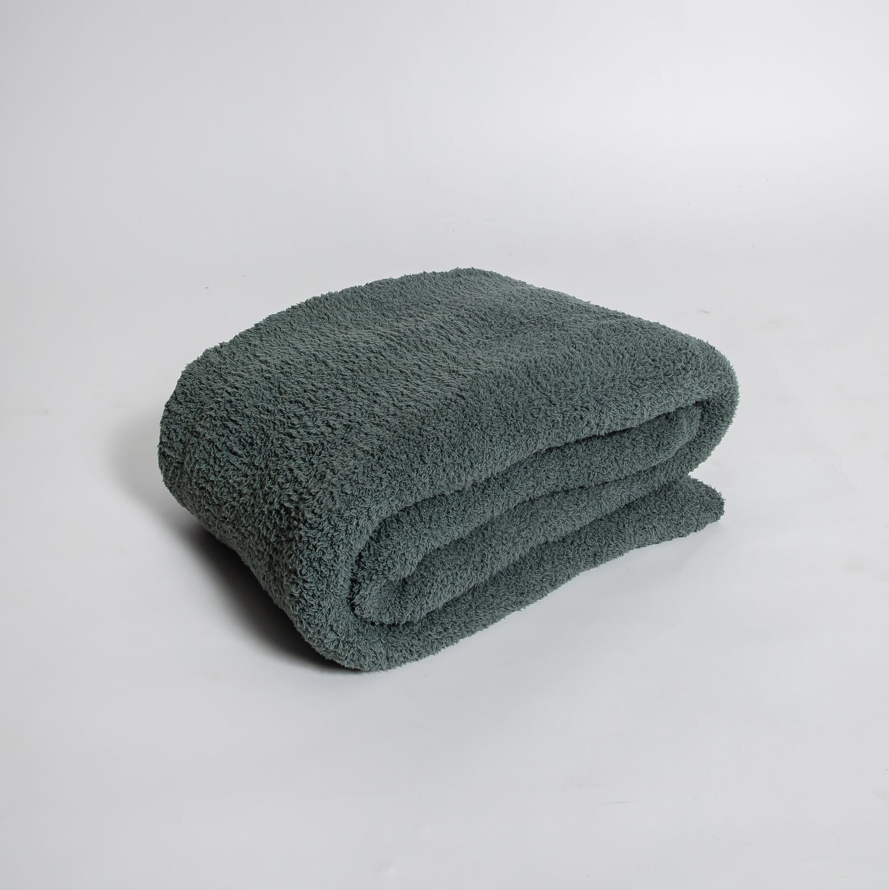 Print: Dark Forest (a soft forest green) Solid Double Layered Print Extended Throw