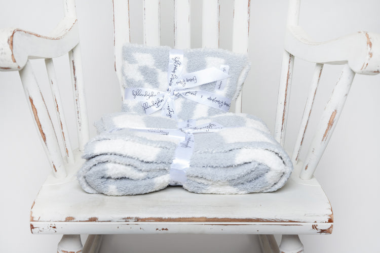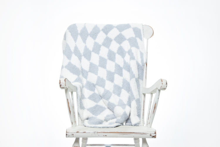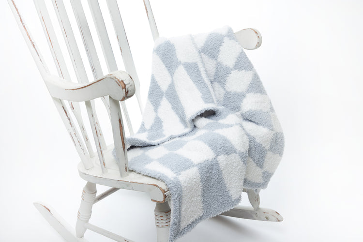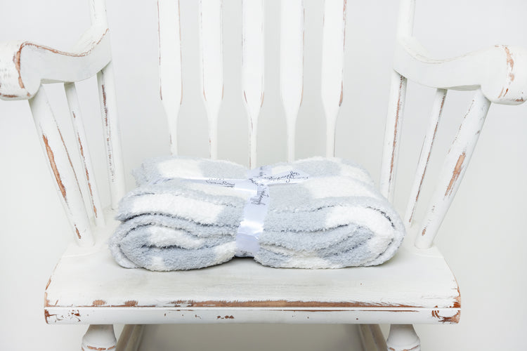 This collab with the amazing Emma Kooyman will have your little one falling in love with this luxuriously soft and snuggly baby blanket. Knit from our signature micro-polyester feather yarn, the frozen & white wavy checker print toddler blanket is destined to become their must-have for nap time, stroller softness, and everyday cuddles. All of our blankets are double layered which provides thickness and stretch to enhance every snuggle.