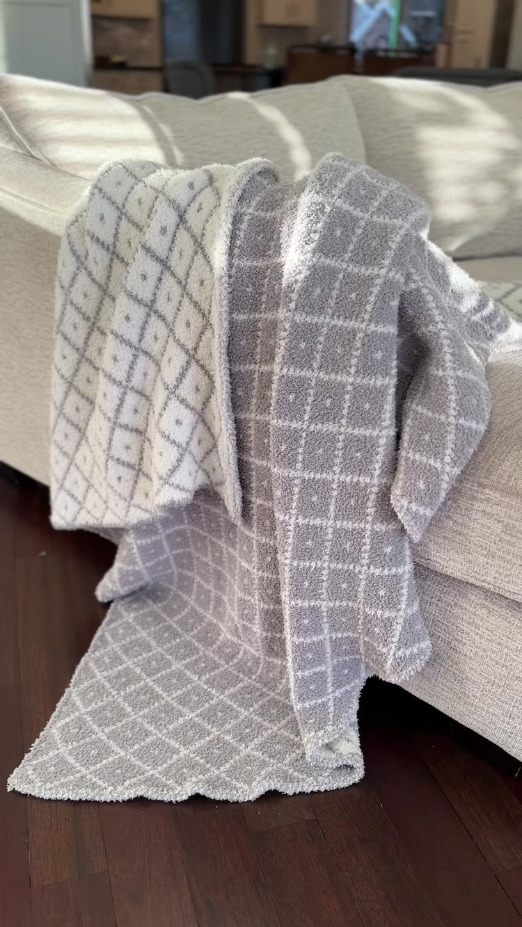 Wrap yourself in luxury with the world's softest throw blanket from Sunset Snuggles. Knit from our signature micro-polyester feather yarn, this trendy diamond point 2.0 print throw blanket is the perfect mix of form and function. These luxuriously plush blankets are double layered, providing thickness and stretch to enhance every snuggle.