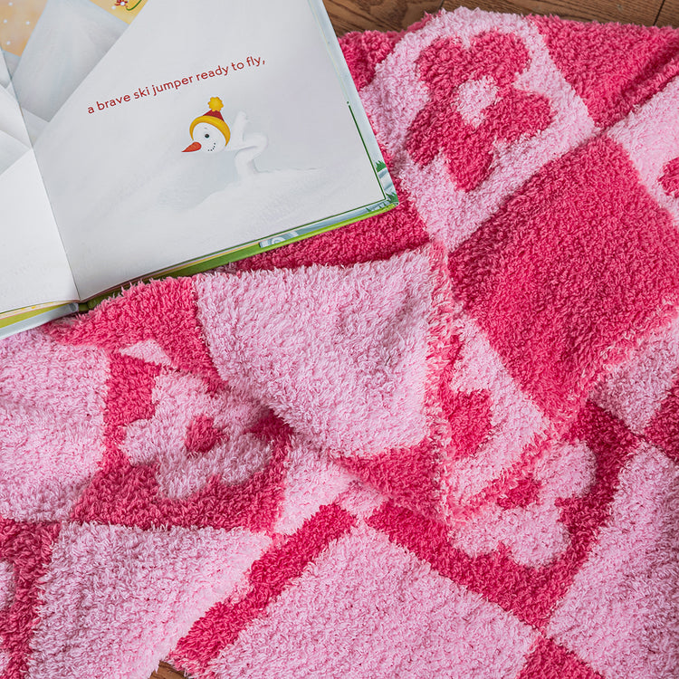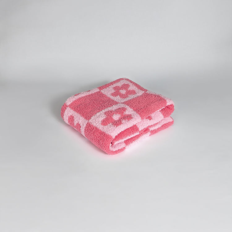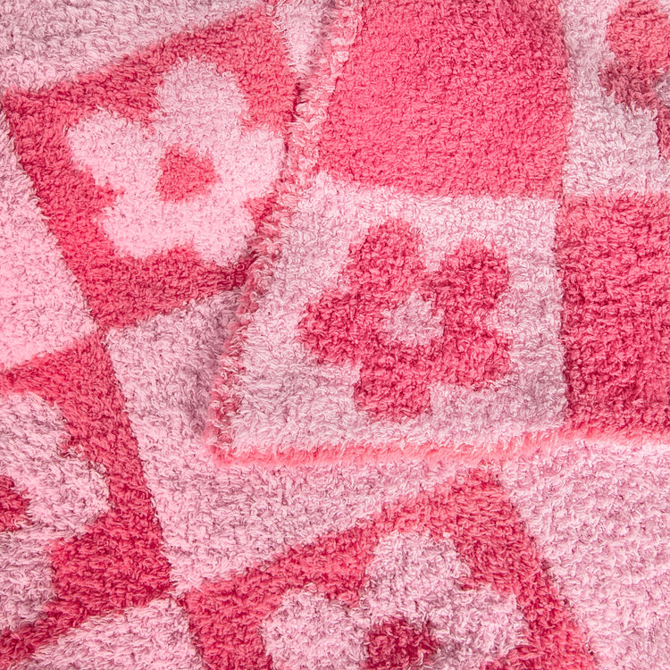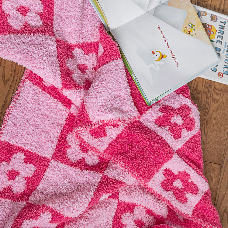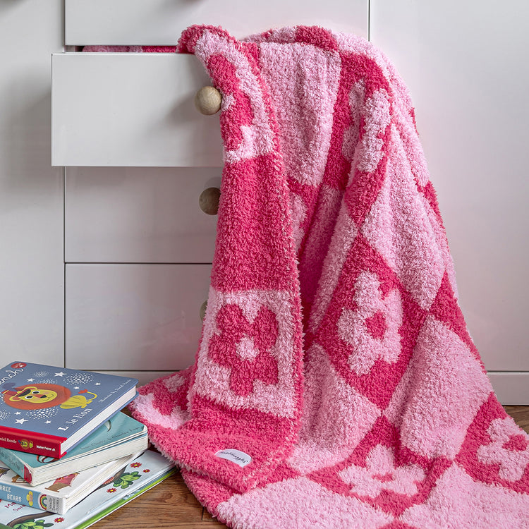 Your little one will fall in love with this luxuriously soft and snuggly baby blanket. Knit from our signature micro-polyester feather yarn the Hot Bright Pink Flower Power Checkerboard print toddler blanket is destined to become their must-have for nap time, stroller softness, and everyday cuddles. All of our blankets are double layered which provides thickness and stretch to enhance every snuggle.