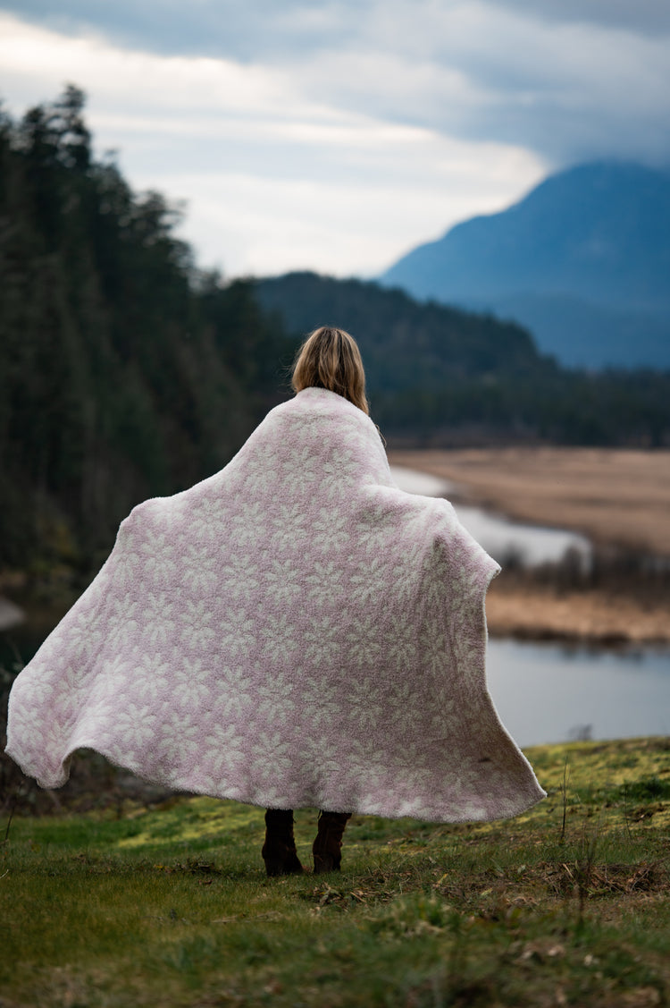Wrap yourself in luxury with the world's softest throw blanket from Sunset Snuggles. Knit from our signature micro-polyester feather yarn, the Hushed Violet & Baby's Breath Daisy Print Extended Throw blanket is the perfect mix of form and function. These luxuriously plush blankets are double layered, providing thickness and stretch to enhance every snuggle.