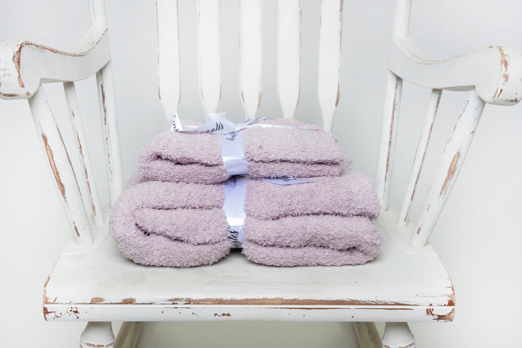 Look no further for the perfect lovey for your sweet little one. Trendy, plush, and oh so snuggly, our Iced Lilac Solid Double Layered Print lovey is sure to be a favourite. Knit from our signature micro-polyester feather yarn, this is the softest lovey you will ever feel! All of our blankets are double layered which provides thickness and stretch to enhance every snuggle.
