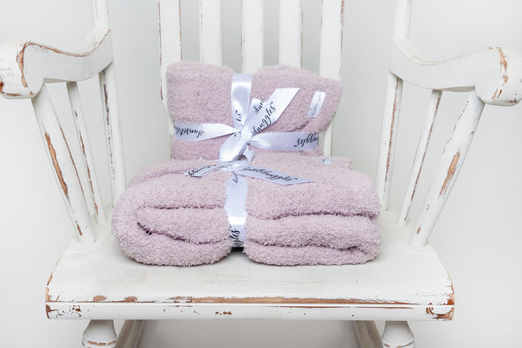 Your little one will fall in love with this luxuriously soft and snuggly baby blanket. Knit from our signature micro-polyester feather yarn, the iced lilac solid double layered print toddler blanket is destined to become their must-have for nap time, stroller softness, and everyday cuddles. All of our blankets are double layered which provides thickness and stretch to enhance every snuggle.