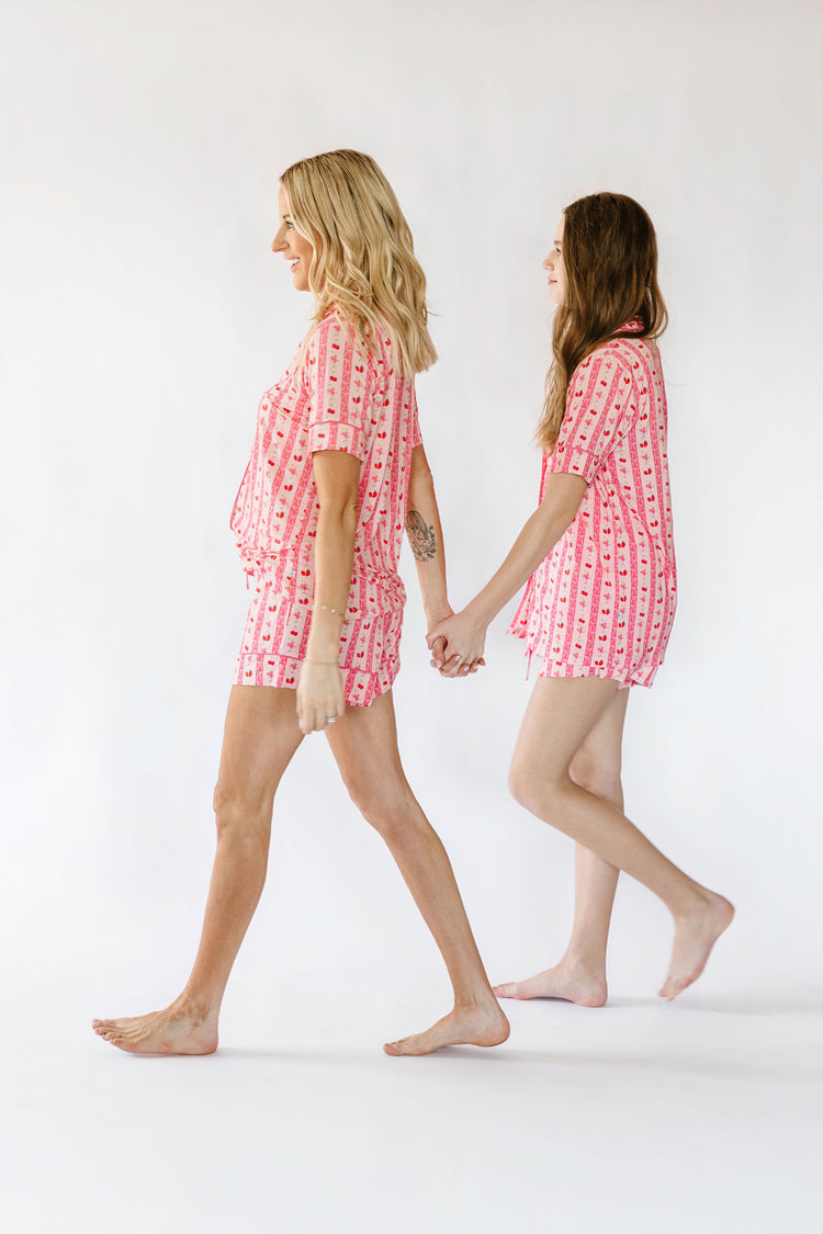 This ultra-feminine pink set is dressed up with a strawberry and cherry bow print—perfect for those who love a little sweetness with their sleepwear. Whether it’s for mama-daughter twinning or just because, this soft and stylish set makes every night feel a bit more special.