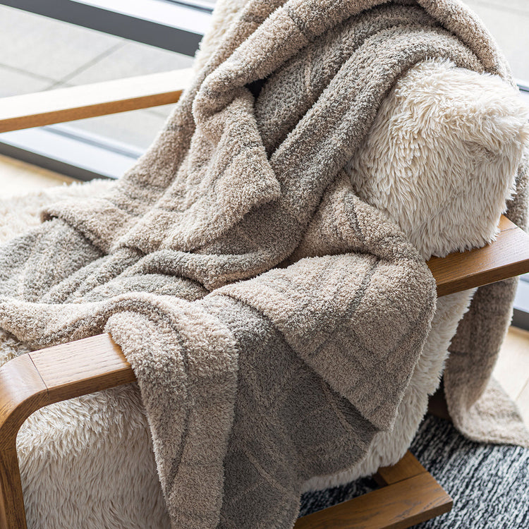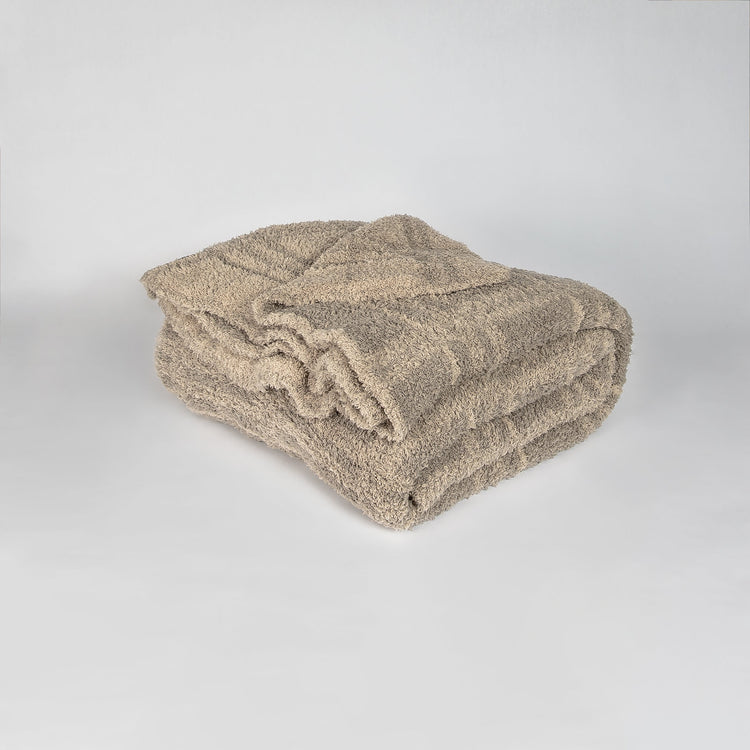 Wrap yourself in luxury with the world's softest throw blanket from Sunset Snuggles. Knit from our signature micro-polyester feather yarn, the Pure Cashmere and Roasted Cashew Plaid print blanket is the perfect mix of form and function.  These luxuriously plush blankets are double layered, providing thickness and stretch to enhance every snuggle.