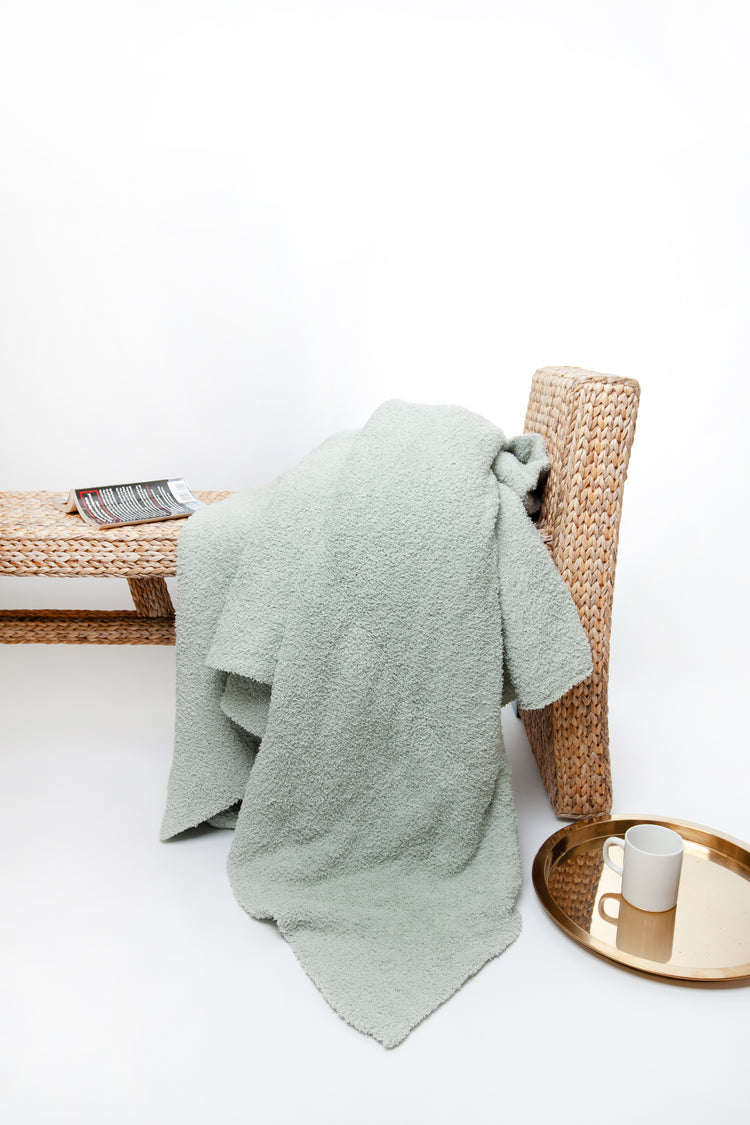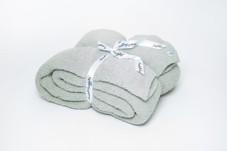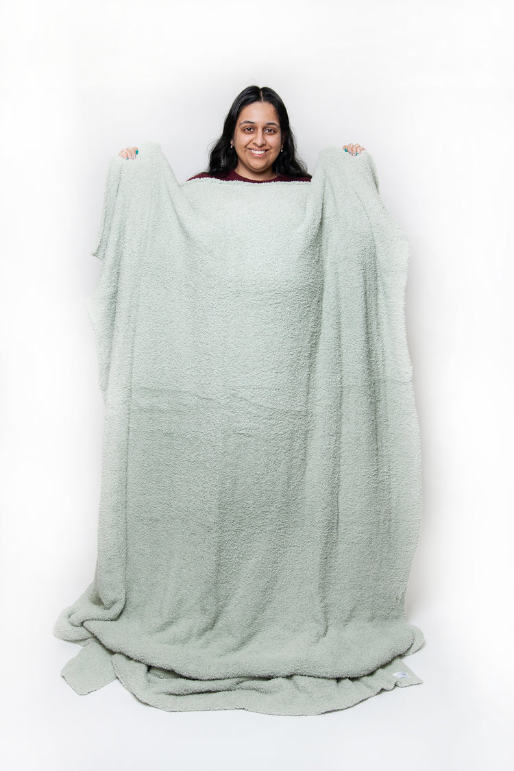 Wrap yourself in luxury with the world's softest blanket from Sunset Snuggles. Knit from our signature micro-polyester feather yarn, this lovely desert sage solid double layered twin bed blanket is the perfect to keep your little one warm at night. These luxuriously plush blankets are double layered, providing thickness and stretch to enhance every snuggle. Provides a 10 inch drape on a children's twin bed. Also is the perfect size for a folded footer on a queen or king bed.