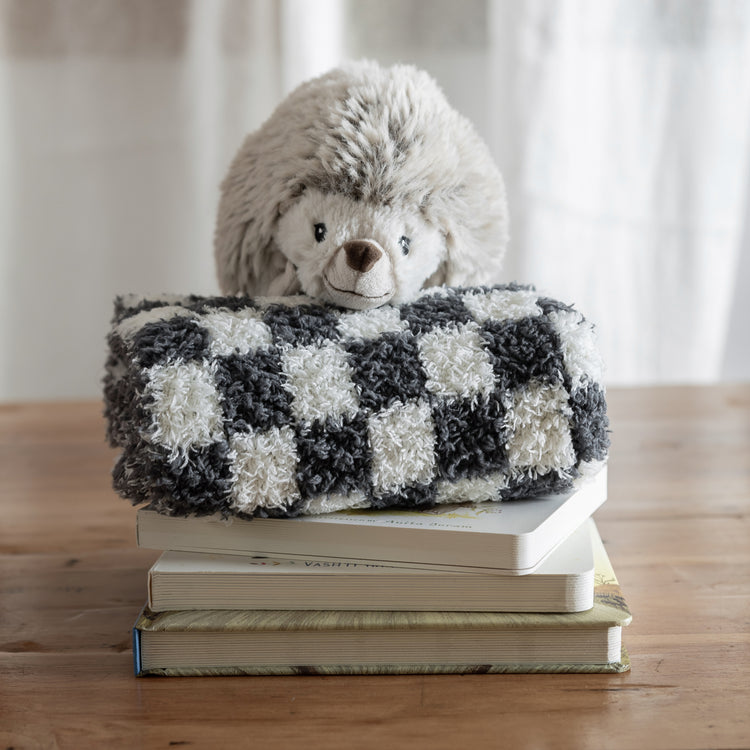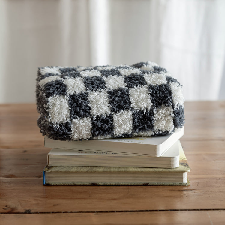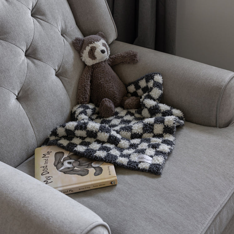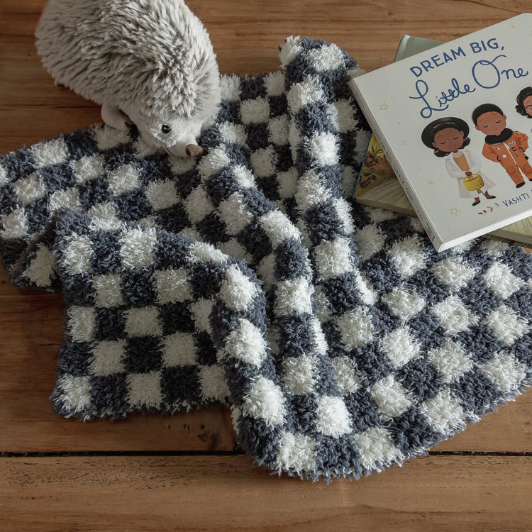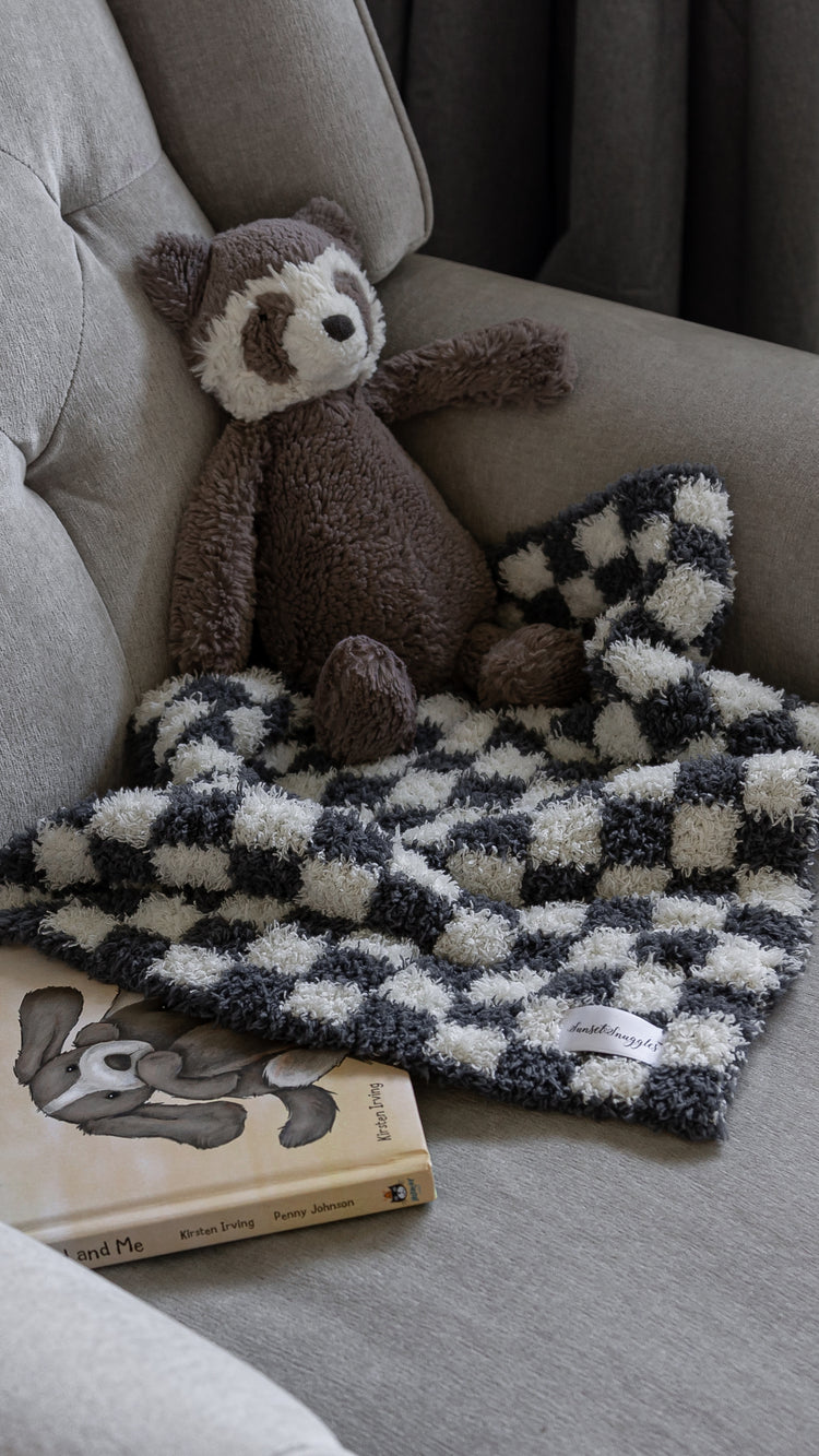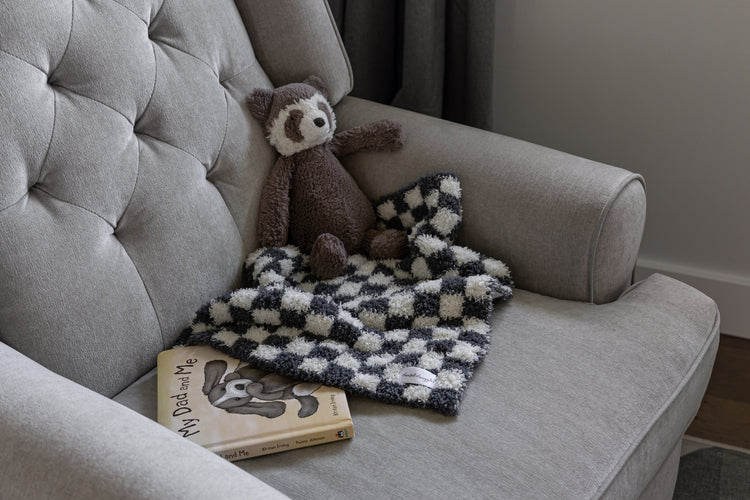 Look no further for the perfect lovey for your sweet little one. Trendy, plush, and oh so snuggly, our Turbulence & Baby's Breath Check Print lovey is sure to be a favourite. Knit from our signature micro-polyester feather yarn, this is the softest lovey you will ever feel! All of our blankets are double layered which provides thickness and stretch to enhance every snuggle.