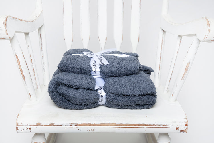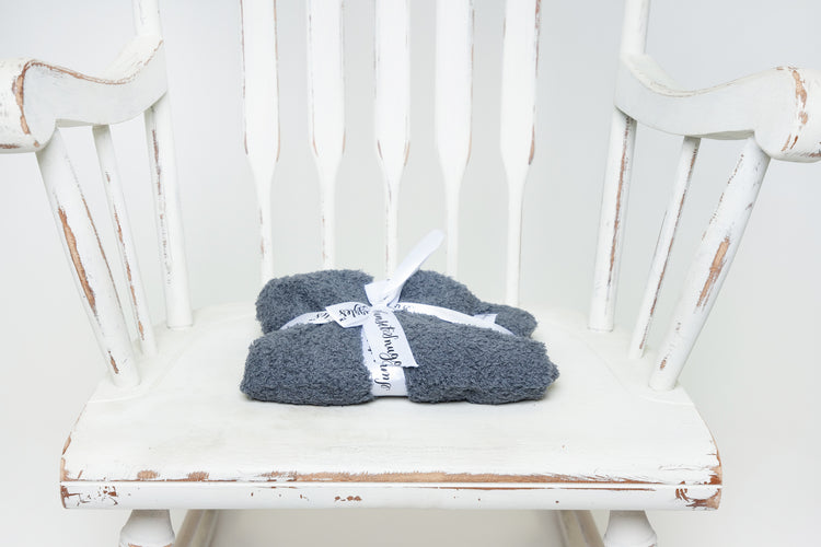 Look no further for the perfect lovey for your sweet little one. Trendy, plush, and oh so snuggly, our Turbulence Solid Double Layered Print lovey is sure to be a favourite. Knit from our signature micro-polyester feather yarn, this is the softest lovey you will ever feel! All of our blankets are double layered which provides thickness and stretch to enhance every snuggle.