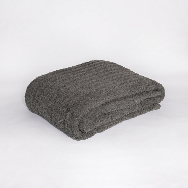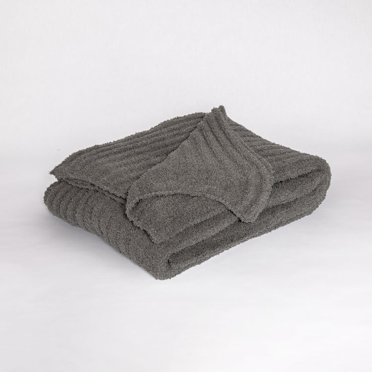 The same softness you know and love from Sunset Snuggles but in a lighter-weight version knit with a ribbed texture.  Normally our blankets are double-layered but this style is not which gives it with a lighter feel and less bulk for those who run hot but still love a soft blanket.
