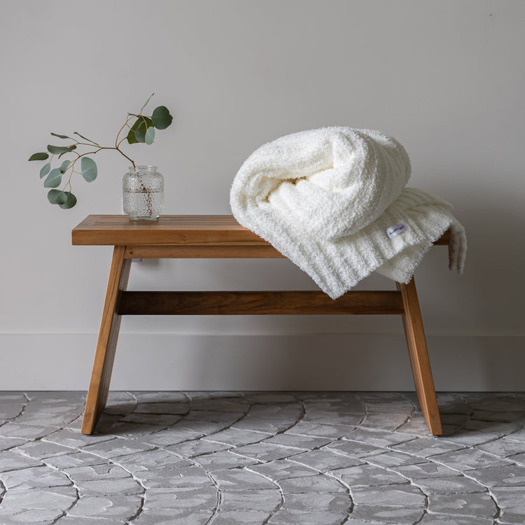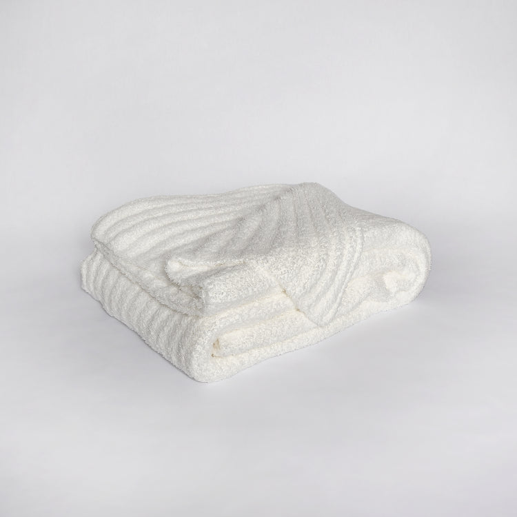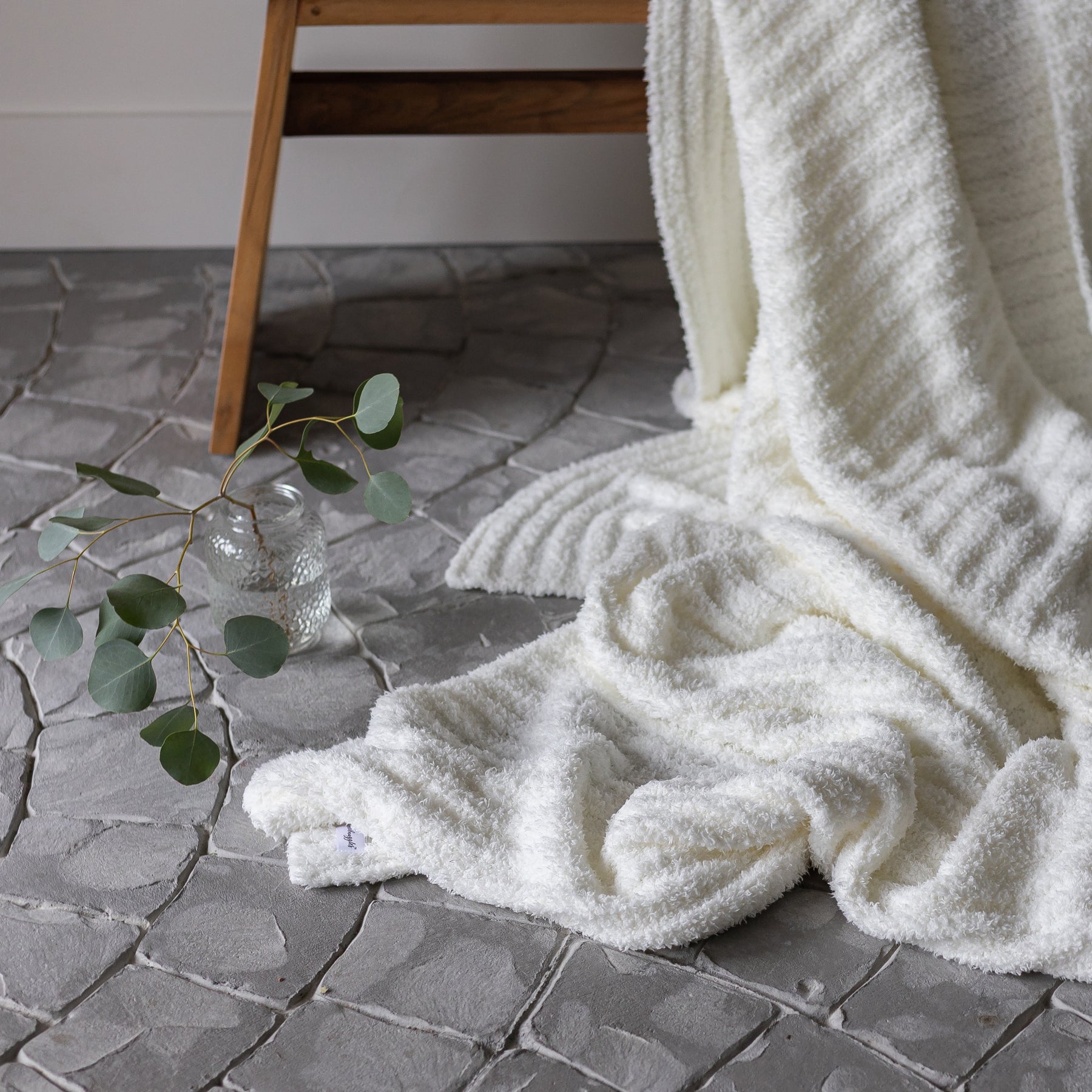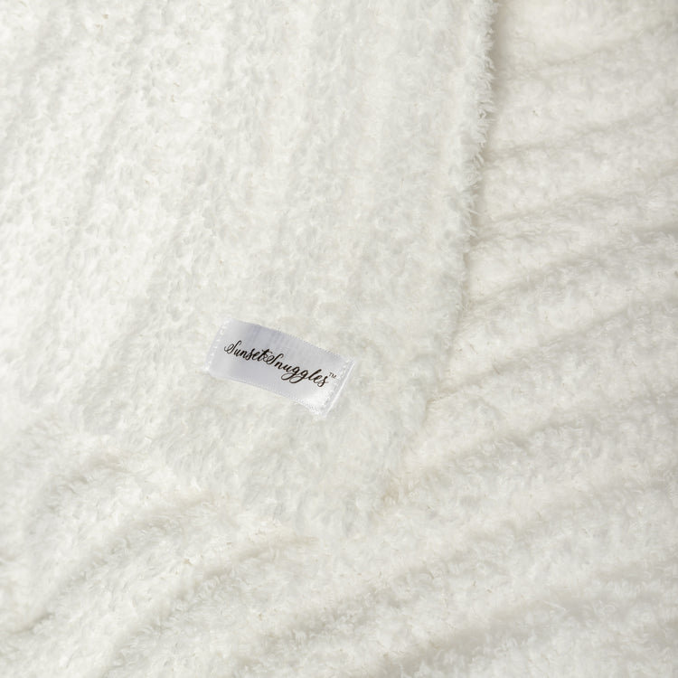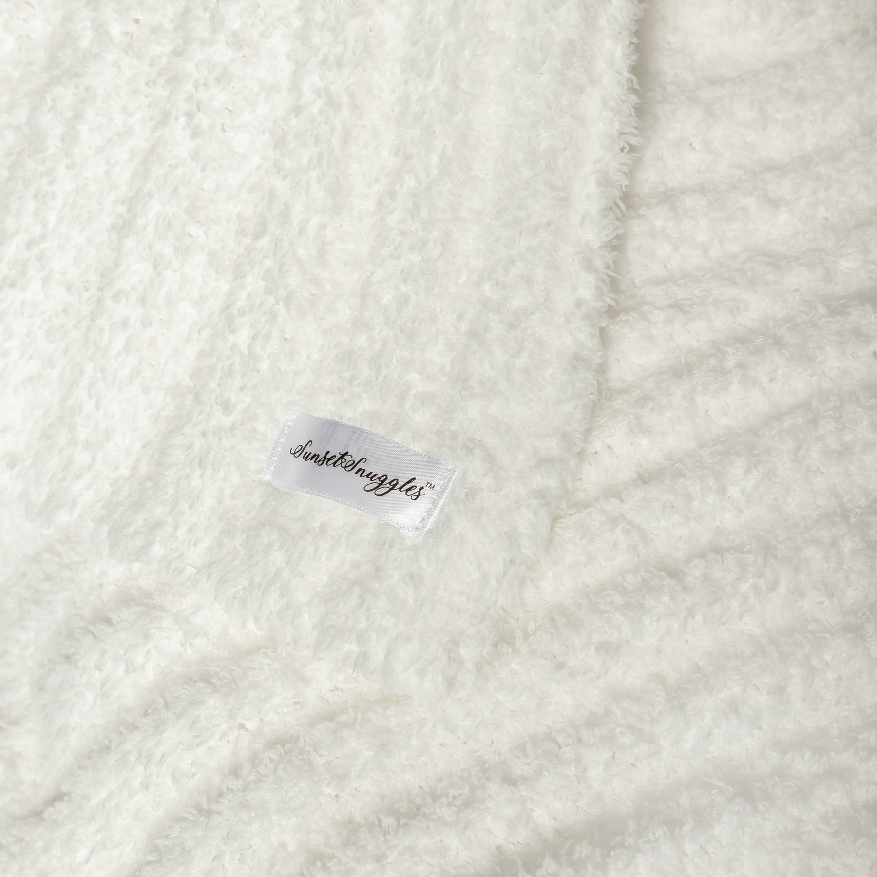 The same softness you know and love from Sunset Snuggles but in a lighter-weight version knit with a ribbed texture. Normally our blankets are double-layered but this style is not which gives it with a lighter feel and less bulk for those who run hot but still love a soft blanket.
